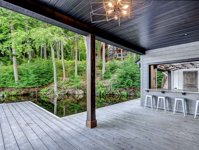 Designed by our subsidiary design company, Spencer Douglas, this boathouse pays tribute to traditional Muskoka architecture through the inclusion of such features as a custom timber truss and stone accents. Notable features include luxurious guest quarters situated on the water, composed of a large, open living space with master suite. A roll-down bar window and lounge area under a covered porch were designed for entertaining no matter the weather, and the inclusion of bi-fold accordion doors makes it easy to be inside or out.