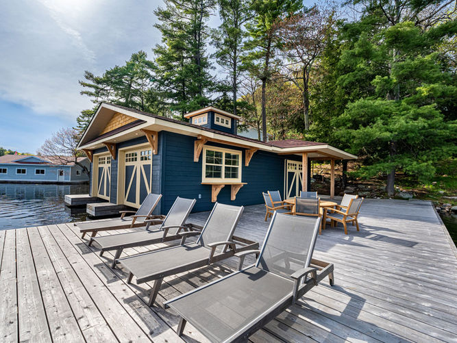 Prepare to be thoroughly charmed by this classic two-slip boathouse. Distinguished by its picturesque cupola, the interior of the boathouse floods with natural light from above. An inviting sliding barn door on the dockside provides access to an indoor area, suitable for entertaining. The delightful exterior is character-rich thanks to an ipe window-bar custom crafted in the shape of a wakeboard boat’s stern, plus Douglas fir trusses and accents.