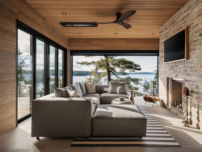Nestled in the treetops and enjoying breathtaking views over the lake, this magnificent 6,000-square-foot cottage is the height of distinction. Employing natural materials to make the most modern of statements, it boasts an extraordinary cantilevered Muskoka room, a sleek contemporary great room with stone fireplace, and floor-to-ceiling windows in the primary suite. With six bathrooms, five bedrooms, and a languorous open kitchen and dining area with access to the Muskoka room via bifolding glass doors, it presents the ultimate canvas for entertaining.